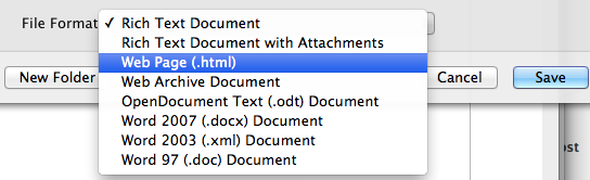 Of course, we could go old school and use the Terminal command-line to convert the following file types to HTML: