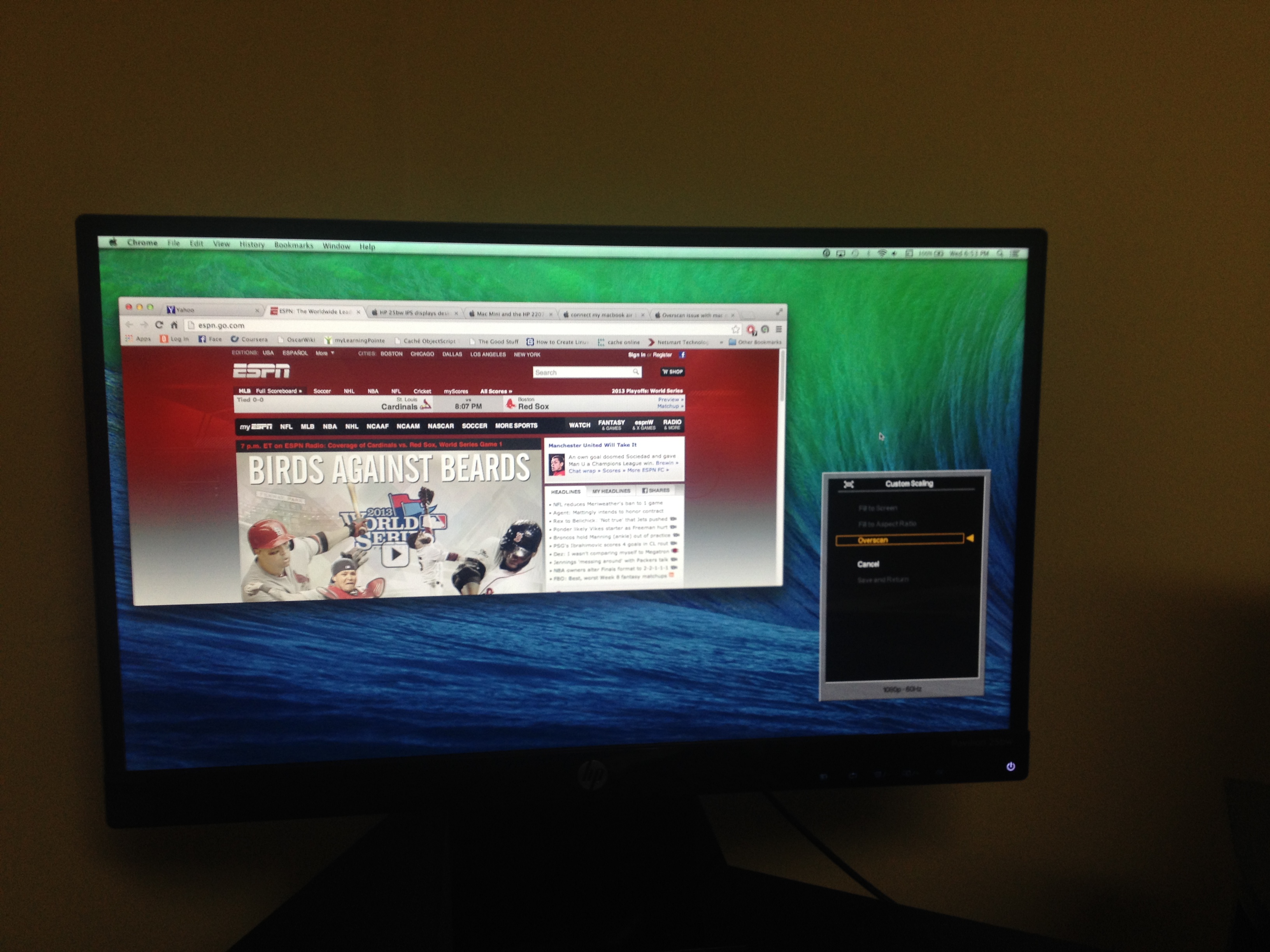 HP 25bw IPS displays desktop too big from MacBookPro Retina
