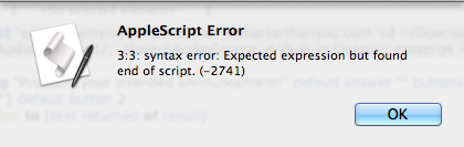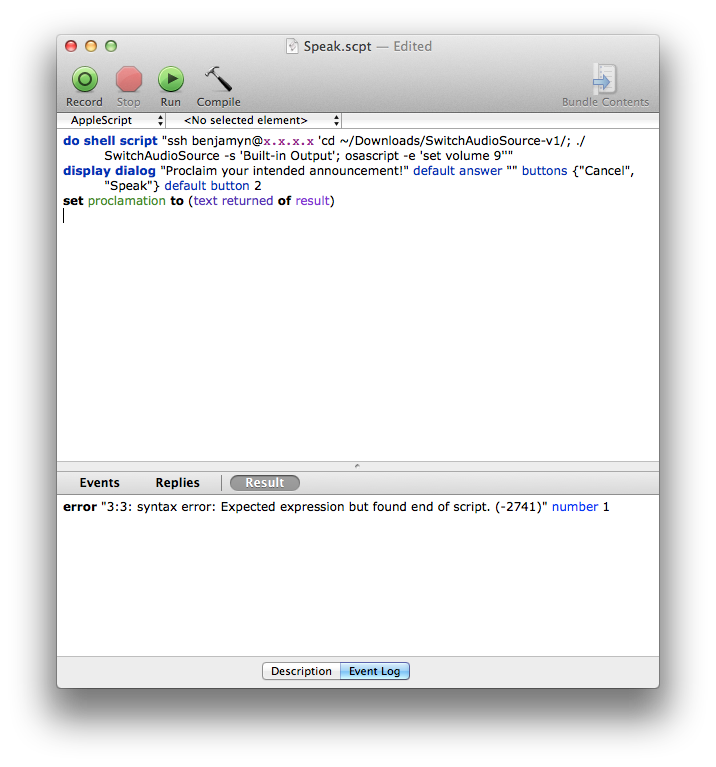 I keep getting this error when trying to assign multiple variables to an ssh applescript, i have done this before with other commands, i believe the error occurs at the last stage of the command: