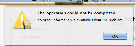 5/27/13 1:52:59.614 PM Contacts[18123]: -[NSAlert alertWithError:] called with nil NSError. A generic error message will be displayed, but the user deserves better.