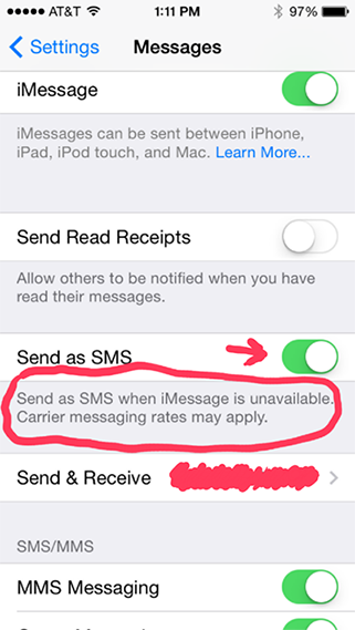 P.S. The 'Send as SMS' doesn't always work in these situations, moving from iPhone to non-iPhone. Sometimes it gets 'stuck' in the iMessage server anyways.