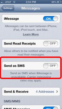 P.S. The 'Send as SMS' doesn't always work in these situations, moving from iPhone to non-iPhone. Sometimes it gets 'stuck' in the iMessage server anyways.