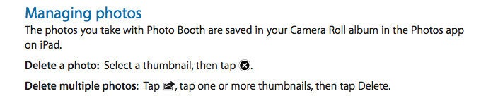 Photos taken with the iPad or copied from emails or website can be deleted using the Photos app.