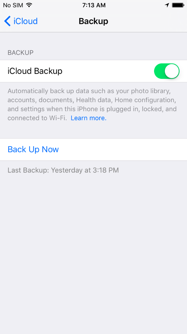 Here is a photo from my Iphone Gold's screen.... showing I backed it up yesterday!