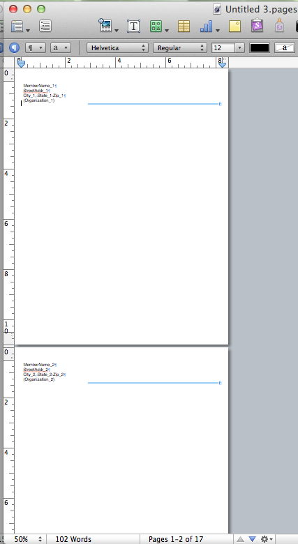 Create the Mail Merge links per the instructions in the Pages User Guide p. 248.