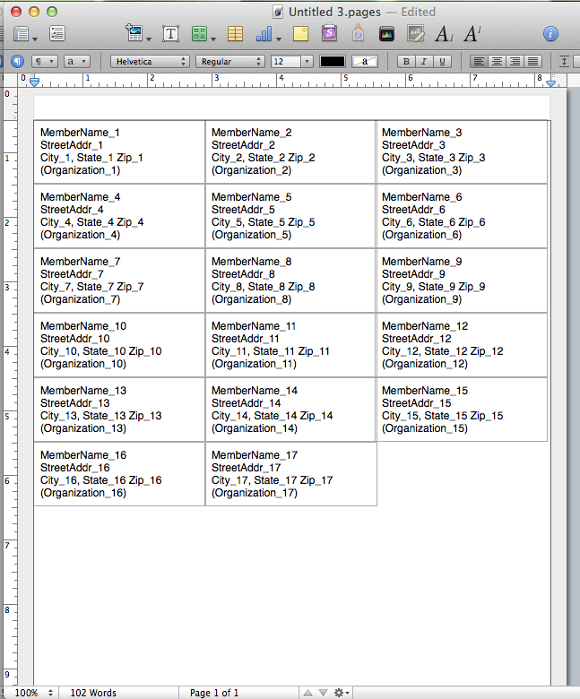 We mock-up the label layout in a blank Pages Word Processing Template