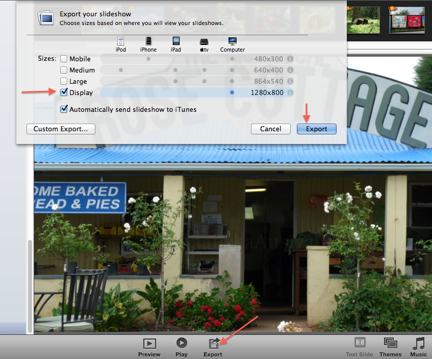 • Select the slideshow in the source list and press the "Export" button.