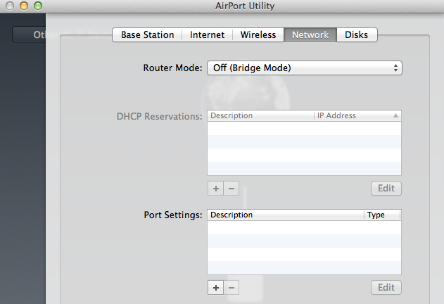 2) Going into the wireless settings for all the devices on my network (2 iphones, 2 macbooks, an apple tv, and an ipad2) and setting them up to use the same manual IP as I specified for them in the TC.