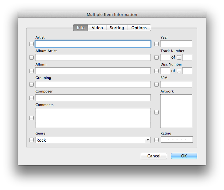 If I have 10 songs how can I change the name of all of those tracks album column name at the same time... they are currently all blank.