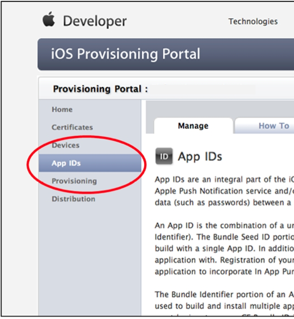 "Note: The iOS Provisioning Portal makes available to all iOS Developer Program members a user guide and a series of videos that explain all aspects of certificate creation and provisioning. The following sections focus on APNs-specific aspects of the process and summarize other aspects. To access the portal, iOS Developer Program members should go to the iOS Dev Center (http://developer.apple.com/devcenter/ios), log in, and click then go to the iOS Provisioning Portal page (there’s a link in the upper right).