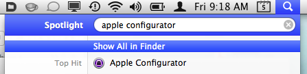 1. Type "Apple Configurator" in the Spotlight search bar located in the top right corner of your screen