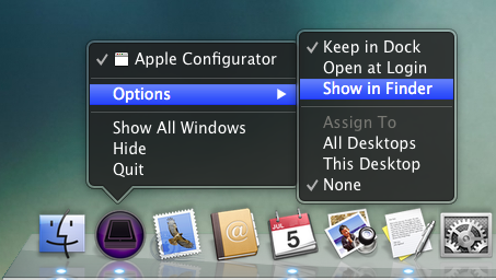2. Right-click (or ctrl-click) on the Configurator dock icon