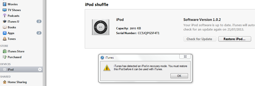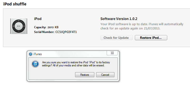 iPod Shuffle 4th, the restore fails