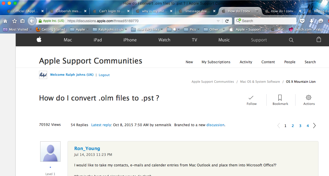 (I filter the Mountain Lion Community by the Messages tag and it shows up as this Unread Post - bold text)
