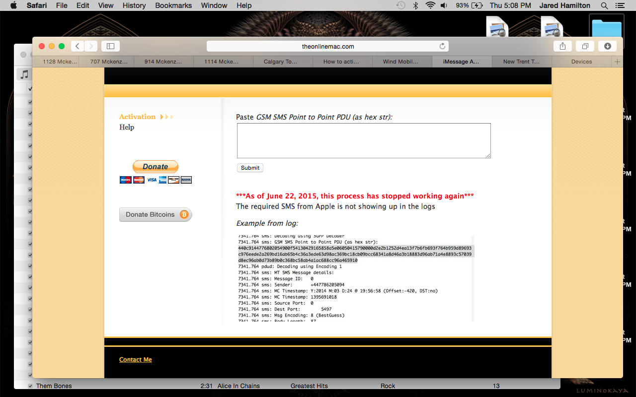 I tried following smcclay's activation process guidelines many times yesterday evening, once my phone number was finally ported over to WIND after a 3-day waiting period. I followed everything to a T, with the added step of disabling logging and restarting my phone before beginning the process again. I waited between 5-30 minutes between the "Toggling iMessage" step and the "Save the log on the iPhone" step, but after 3.5 hours worth of attempts with no text from +447786205094 in the log, I knew something was up.