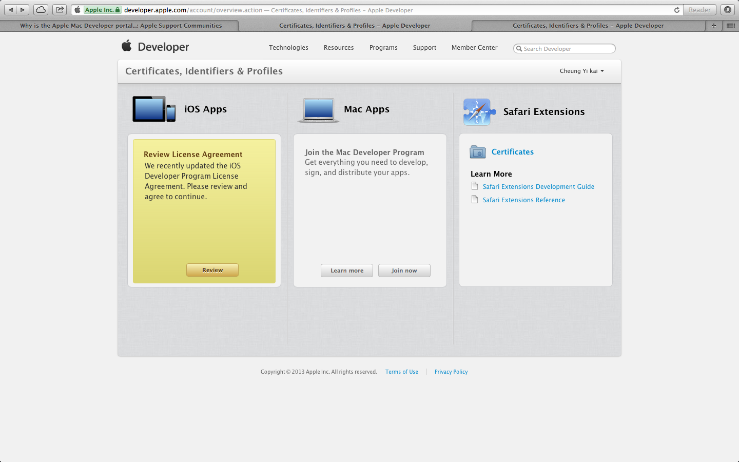We have the EXACT problem. I too cannot access the certificates to get a simple development certificate from apple.
