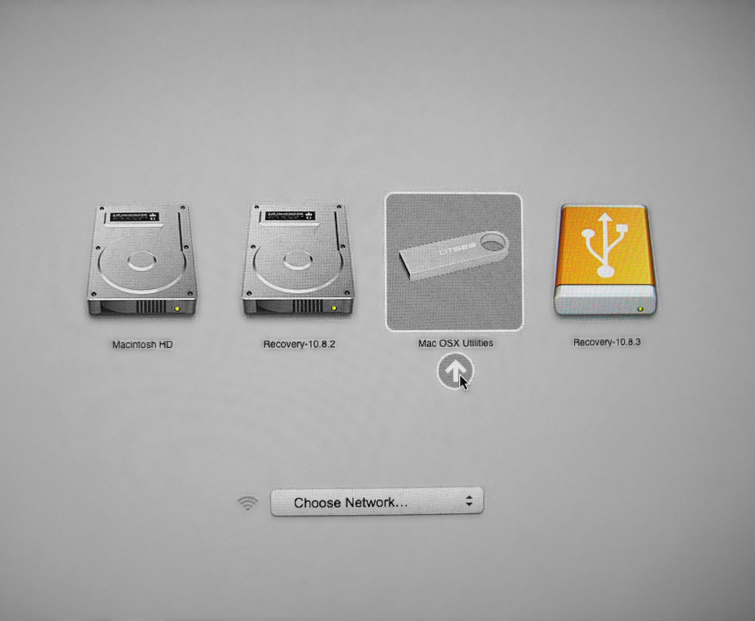 4. Holding down the "option" key, selected my 32GB Flash Drive (among start up icons displayed on screen).