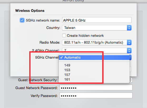 but the channel of WiFi 5Ghz is different between Janpan and Taiwan.So that, i can't use most of channel when I use the 5Ghz in Taiwan.