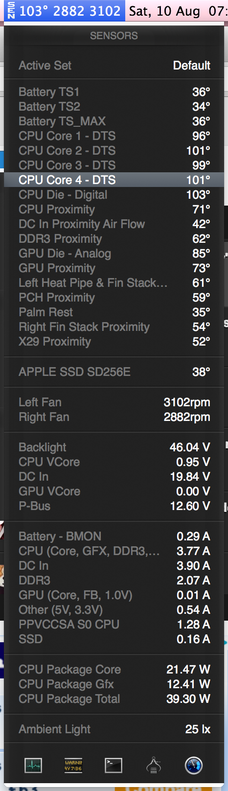 About 2 weeks ago I had taken my (4 month old) MBPR 15" to the Apple service. The CPU and GPU temperatures were skyrocketing. My CPU reached the 90s in OSX just after boot with no programs switched on and when running games in bootcamp it reached a scary 105Celsius.