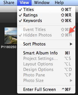 how do I find "hidden" photos in iPhoto