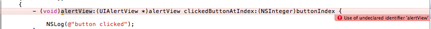 The error message is telling you the problem, alertView is an undeclared identifier, among other problems.