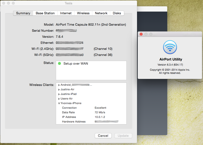 While I most certainly appreciate Apple's "Set it and forget it" capability and reputation, the network admin, techy, geek, engineer side of me would like to know more. I run back ups, stream video, have a lot of home automation wireless, kids on iPad's, iPhone's, work PC (bad words I know...), remote desktoping, remote desktop over the internet, Network Attatched Storage device, etc happening here (not all at the same time usually). Oh yeah, I'm a perfectionist too. So needless to say I crave more information.