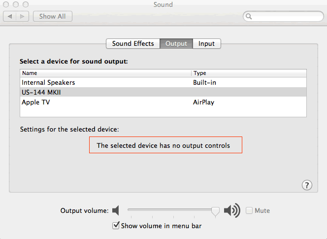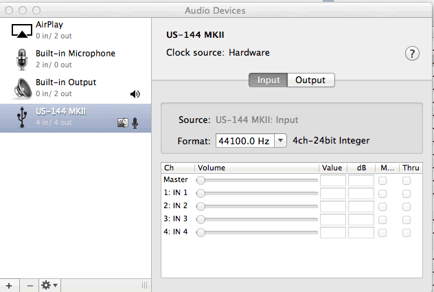 In Applications>Utilities>Audio MIDI Setup I can see the device, but none of the sliders respond: