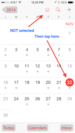 Just updated to iOS 7 and it looks like List View in Calendar is gone? AAACCCK! With multiple shared calendars enabled (my wife's, kids school events etc.) I'm finding it very hard to see what my day(s) look like without scrolling like crazy through graphical representations of events. I'm accustomed to just viewing the list and scanning by color of events (for example my work calendar is green).