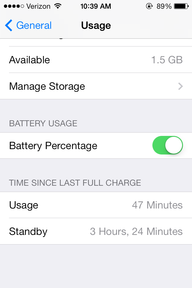 Now I am on IOS 7 it's terrible. I was down to 58% after 4 hours standby and about 40 minutes usage. After about 20 minutes it had dropped to 30%.