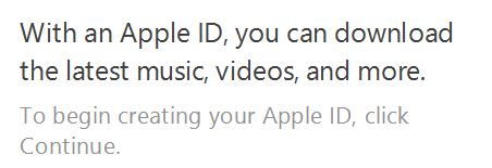 When I log in, I get a popup window saying "This apple ID has not yet been used with the app store". When I close the pop-up window, I get a web page telling me "to create a new apple ID, click continue" (see image at the bottom). Why would I create an apple ID when I already have one? That's exactly how I ended up creating my Apple ID in the first place. Now, I am back to the beginning. This is very confusing. It is also very frustrating because such a poor experience can be designed by a company like Apple.