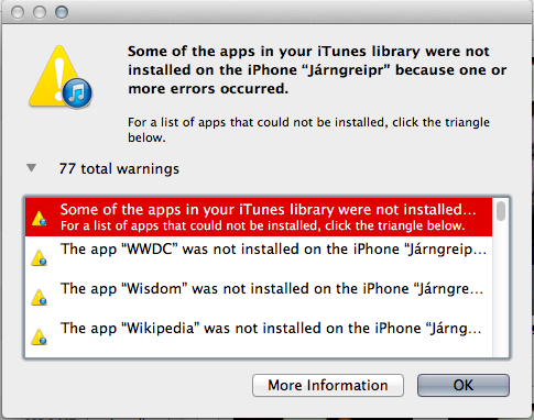 Some of the apps in your iTunes Library were not installed because one or more errors occurred