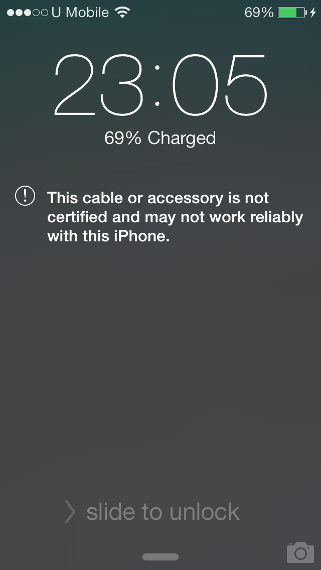 Anyone else getting this on an iPhone 5 after upgrading to iOS 7? Randomly, without a cable or accessory attached, I'm getting the "This cable or accessory is not certified and may not reliably work on this iPhone" error message! Perhaps my hands or fingers are the wrong type?! )))