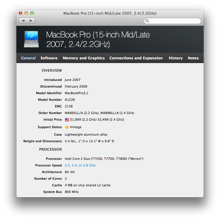 MacBook Pro, OS X Mountain Lion (10.8.4), 2007 MacBook Pro 15'' 3,1 Intel Cor