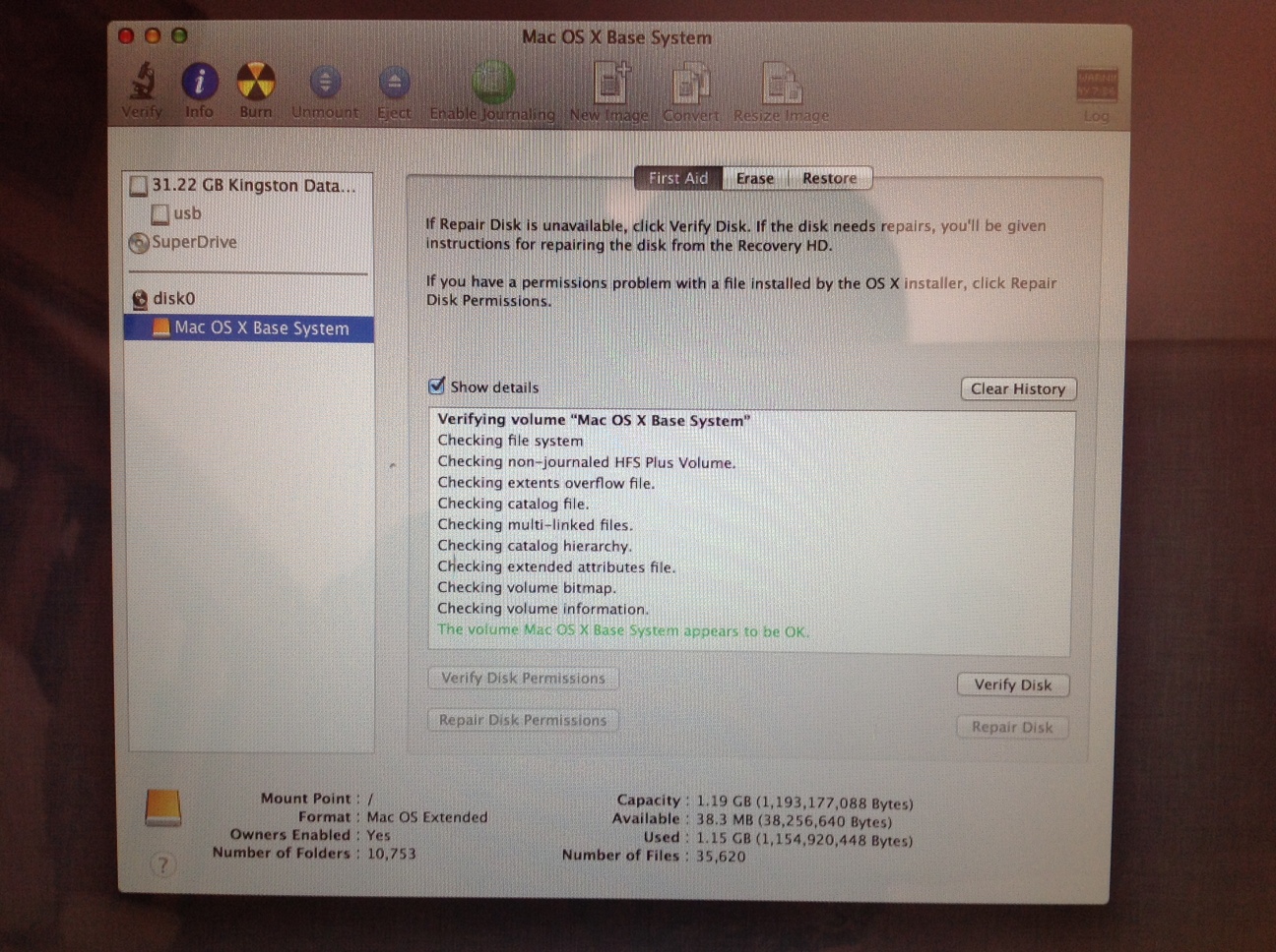 I went and looked at the 'Repair Disk' one because then I thought it was bad, but I verified the disk that's on my computer and it apparently isn't able to be fixed. It's just fine, according to that. But then why can't I reinstal the OS X!?
