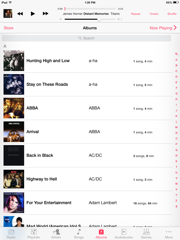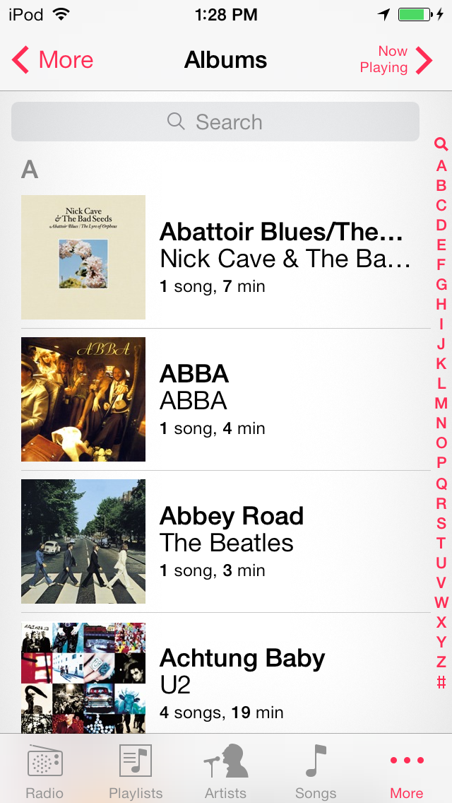 See how albums are sorted by the artist unlike on my iPod by the album title itself.