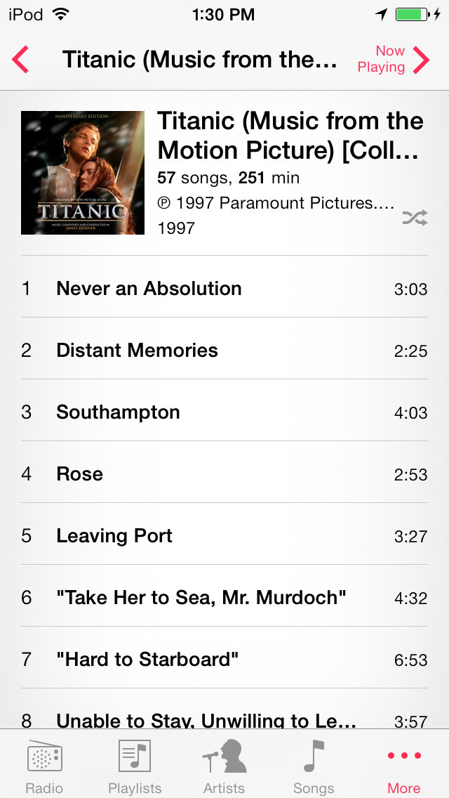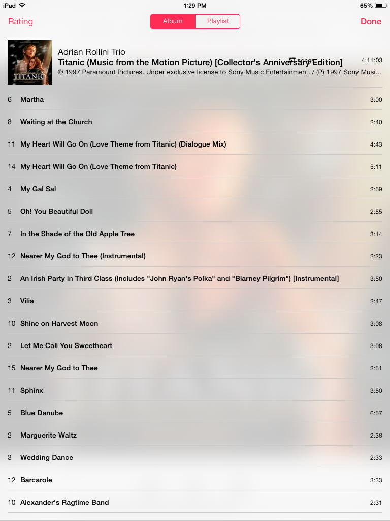 Titanic album with tracks in order.