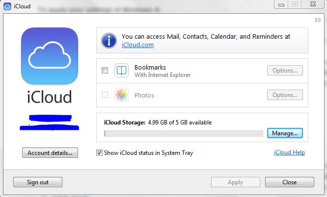 iCloud Control Panel 3.0-OTHER, Windows 7