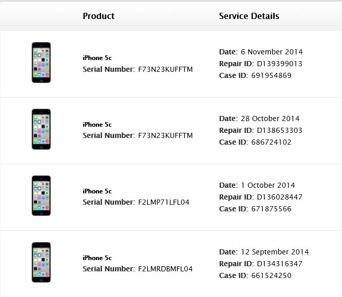 I can also provide every repair ID for each phone.