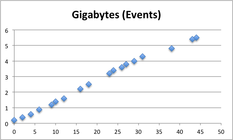 I logged the memory use from the phone being "empty" until the memory was used up after around 45 minutes.