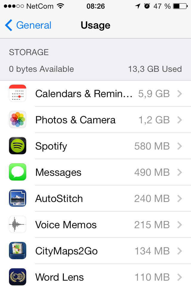 This is what it looks like in the usage overview. Note how the Calendars & Reminders are suspiciously big.