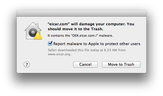 While XProtect is not a true virus scanner, I would like to know if there is a file like EICAR for the Mac OS that simulates the same thing. How do I know that it's running while I am browsing the web?