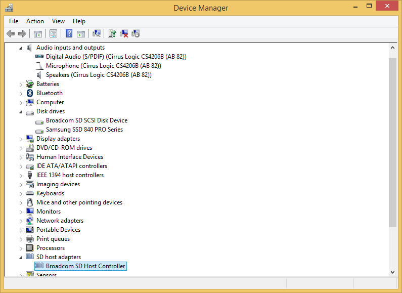 Here's the thing: the SD Card (the slot, the device, the card, the folder, the drive, everything) just vanishes after the MBA wakes up from sleep. I've tried it with various cards with different filesystems (FAT32, NTFS, EXFAT) and capacities (32GB, 64GB, 128GB) -- always the same. I've reinstalled Windows 7 Pro x64 multiple times using up-to-date boot camp assistant and Apple Support Drivers.