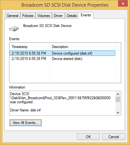 I have the same problem too 😟. By the way removing the usb root hub doesnt make the sdcard come back. I have tried by remote accessing it with team viewer. However, i noticed that rarely it will be detected again after 10 minutes, this only happend twice.... when it comes back alive event logger says (below). Is this relavent?