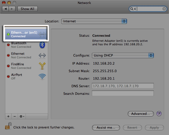 Open System Preferences > Network. Locate and select the Ethernet adapter listed, and then click the gear icon and choose Make Service Inactive. Then choose Make Service Active: