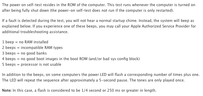 what I have leaned on the forums/discussions here on apple is that the 3 beeps mean I don't have the right disk for my MBP (Gray Disks) as when my computer boots up it doesn't beep at all only when I have the instantiation DVD (NOT FOR RESALE) white Snow Leopard, that I order from apple/apple support, in the drive and hold down the C key durning bootup, even when I hold the optioon/alt key and give me a list of disk to boot up from I pick the CD/DVD drive and when I do it starts do the 3 beeps every few sec. so I have to press and hold the power button to get to restart.