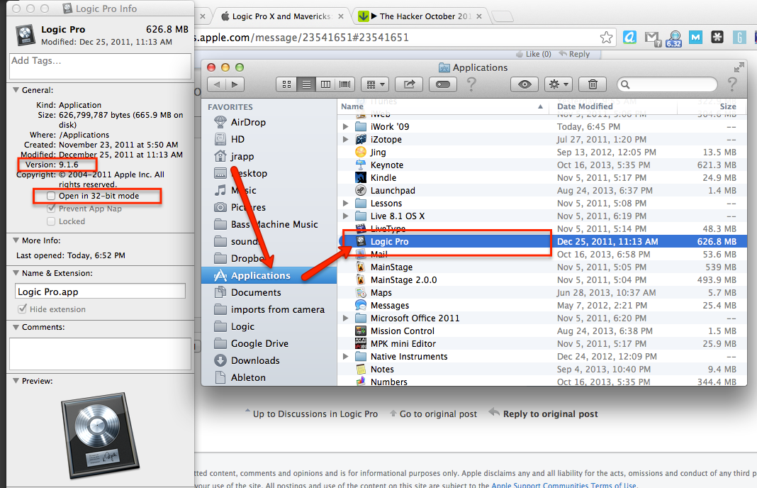 b) It is named Logic Pro and not something like Logic Pro 9.1.6 or Logic Pro 9. If it is not named Logic Pro, rename it.