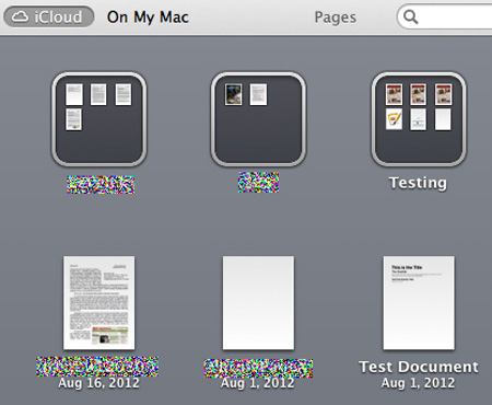 Although the iCloud Open/Save dialogue box (and on the iPad) is not strictly part of Pages, the whole iOS/OSX cross-device synchronizability (whew!) is what seems to have caused the mess. Here's another issue I have, and I'm not sure if this is supposed to be a (secrecy) GUI feature, a brainless omission, a bug, or perhaps gremlins are on the lose in my iPad. When attempting to open an iCloud file from your iPad, the graphical/textual cues are definitely ...ahem... less than helpful: