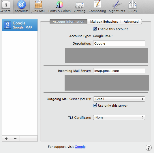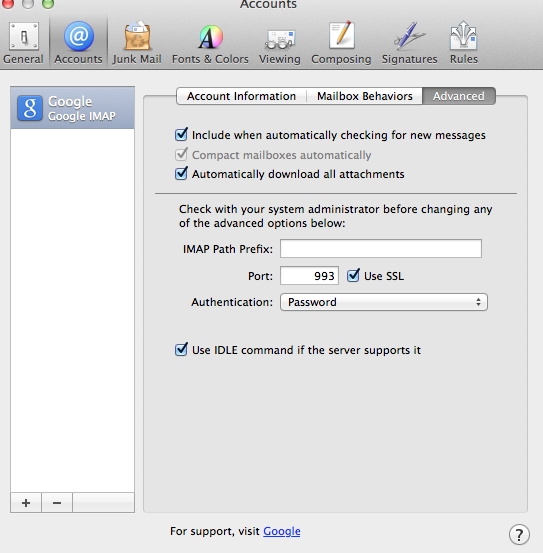 Account Type: Google IMAP