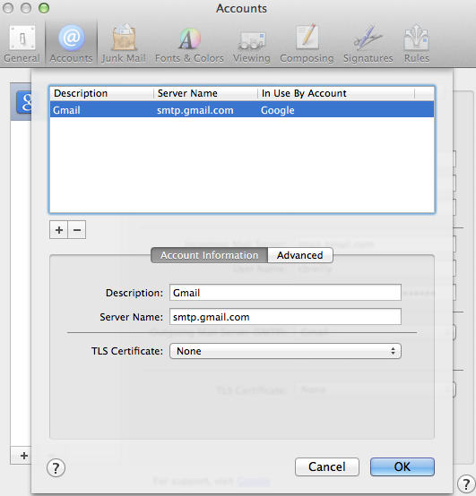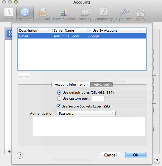 Outgoing Mail Server (SMTP): Gmail