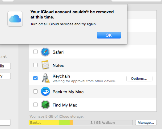 8. Now, on the troubled Mac, you should find that the Keychain option is disabled so that you can log out of iCloud.